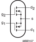 Dual push-pull silicon N-channel enhancement mode vertical D-MOS transistor, designed for broadcast transmitter applications in the VHF frequency range. The transistor is encapsulated in a 4-lead SOT262A1 balanced flange package, with two ceramic caps. The mounting flange provides the common source connection for the transistors.